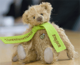 Was ist das Wesen der Verantwortung? Bei Arcandor hat man diese Frage spielerisch beantwortet, indem man Verantwortung als Wesen wahrnimmt. Als kleinen Teddy-Bären genauer gesagt, der seit letztem Sommer in limitierter Auflage Prominentenherzen erobert. Der Teddy-Bär ist dabei gerade einmal 13 cm groß, klassisch im Design und nur mit einer Schleife und dem Leitspruch „Verantwortung tragen“ ausgestattet. Auf jegliche Firmen- und Werbeembleme wurde bewusst verzichtet.
