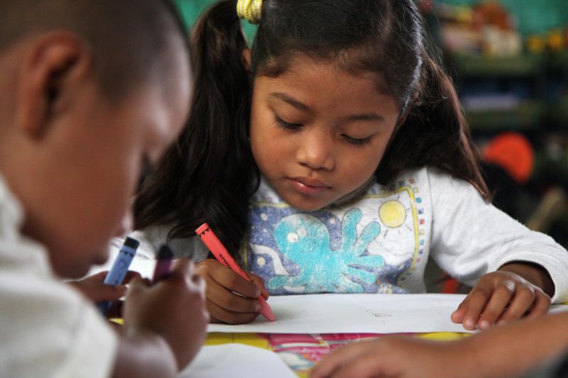 In den Kitas gibt es drei aufeinander aufbauende Lernstufen, in denen die Kinder pädagogisch und schulisch betreut werden. Die erste Stufe fördert die Zwei- bis Sechsjährigen durch kindliche Früherziehung. Hier lernen sie spielerisch, ihre motorischen und sprachlichen Fähigkeiten zu verbessern. Auf diese Weise bereiten die Erzieher die Kinder auf die Grundschule vor. Die zweite und dritte Stufe richtet sich an die Gruppen der Sieben bis Neun und der Zehn bis 13jährigen. Dort haben sie die Möglichkeit, schulische Inhalte zu vertiefen. Dabei gehen die Lehrer auf den jeweiligen Entwicklungsstand der Kinder ein und passen die Lernmethoden an die individuellen Bedürfnisse an. Da sich das Ende der Pflücksaison und der Beginn des Schuljahres in Chiquimula überschneiden, wird den Kindern so ein reibungsloser Schulstart ermöglicht. „Mir gefällt es, hierher zu kommen und zu lernen, weil ich später selber gerne Lehrerin werden möchte“, sagt Maria del Carmen.