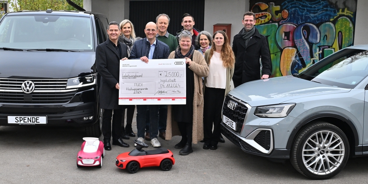 Die Hochwasserkatastrophe im Juni 2024 hat zahlreiche Landkreise in der Umgebung der Audi-Standorte Ingolstadt und Neckarsulm stark getroffen. Um rasch und ohne bürokratische Hürden Unterstützung zu leisten, initiierte der Audi Gesamtbetriebsrat gemeinsam mit dem Vorstand eine freiwillige Spendenaktion, an der sich über 3.000 Mitarbeiter:innen beteiligten. In Kombination mit einem großzügigen Beitrag des Unternehmens erreichte die Gesamtsumme der Spenden mehr als eine Million Euro. In der Region Ingolstadt fließen die Spendengelder hauptsächlich in den Wiederaufbau von Kindertagesstätten, Jugend- und Seniorenzentren sowie Sportvereinen. Zudem unterstützt Audi die Anschaffung zusätzlicher Rettungsausrüstung für das Bayerische Rote Kreuz, das Technische Hilfswerk, die Johanniter und weitere lokale Hilfsorganisationen. Ein weiterer Teil der Spendenmittel wurde über die Diakonie Katastrophenhilfe als direkte Hilfe für die Betroffenen in den Gemeinden Baar-Ebenhausen, Reichertshofen und Pfaffenhofen eingesetzt.