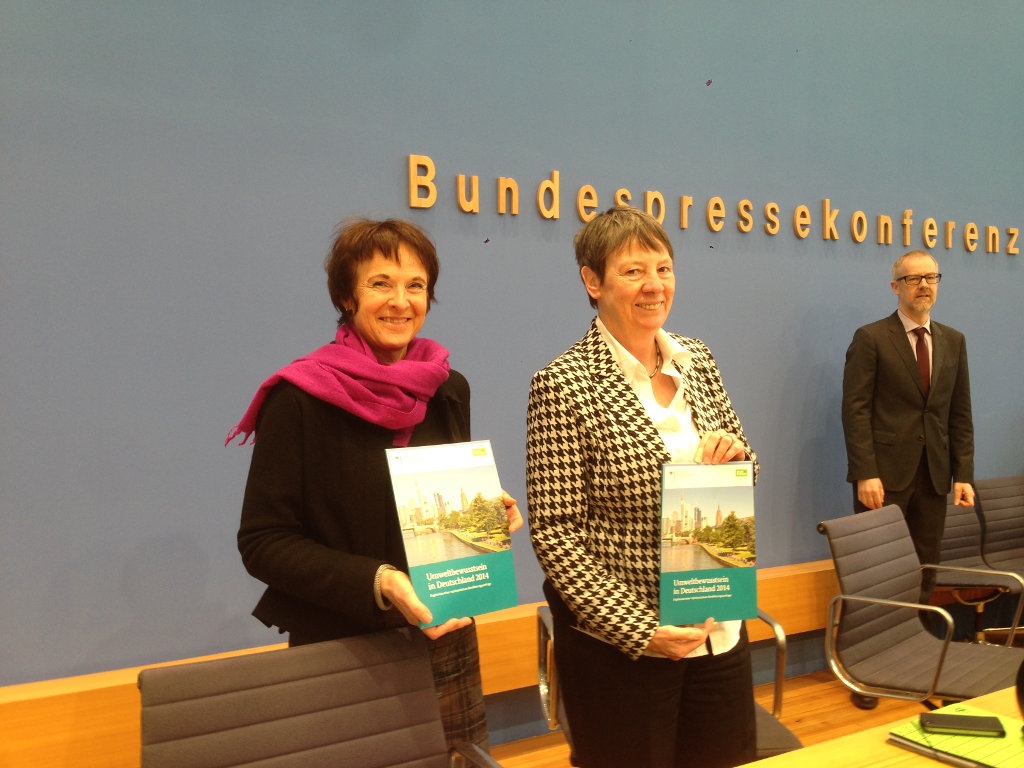 Barbara Hendricks und Maria Krautzberger stellen die Umweltbewusstseinsstudie 2014 vor.