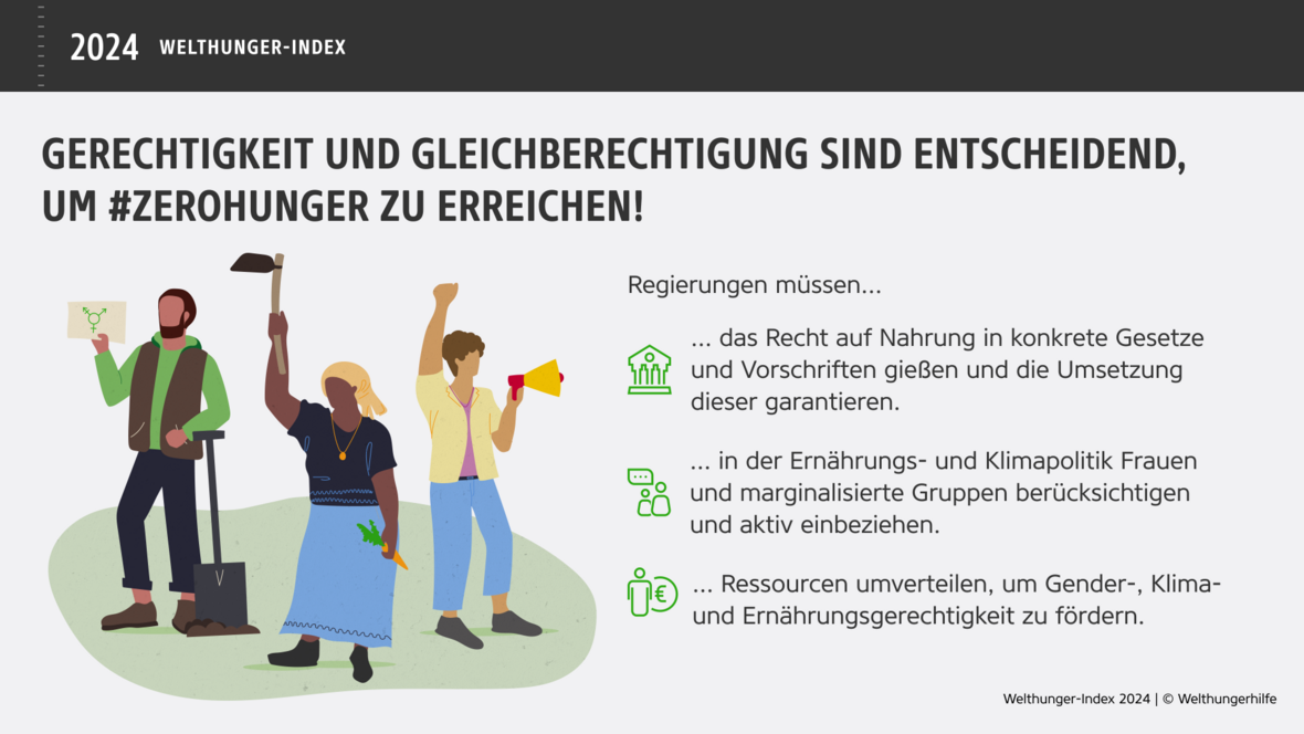 Der diesjährige Bericht konzentriert sich auf die Wechselwirkungen zwischen Geschlechterungleichheit, Ernährungsunsicherheit und den Auswirkungen des Klimawandels. Er zeigt, wie diese Herausforderungen miteinander verknüpft sind und eine enorme Belastung für Haushalte, Gemeinschaften und ganze Länder darstellen. „Geschlechtergerechtigkeit ist ein wichtiger Hebel, um den Hunger nachhaltig zu beseitigen. Regierungen müssen in Gesundheit, Bildung und ländliche Entwicklung investieren, um die bestehenden Ungleichheiten zu beseitigen und Frauen besseren Zugang zu Ressourcen und Entscheidungen zu ermöglichen“, fordert Mathias Mogge, Vorstandsvorsitzender der Welthungerhilfe.