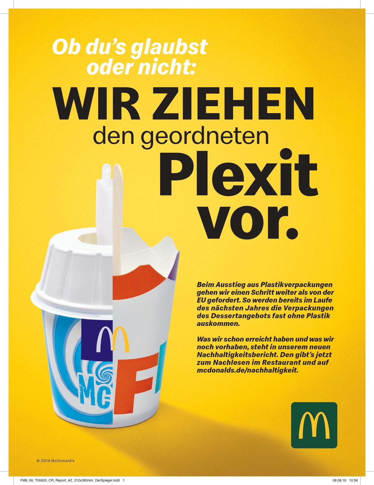 McDonald’s Deutschland will trotz der Krise auch an langfristigen Zielen festhalten – zum Beispiel an seinen Versprechen hinsichtlich Plastikreduktion und Müllvermeidung. Im Juni 2019 veröffentlichte das Unternehmen einen Fahrplan, welche Verpackungen in den Restaurants bis 2021 durch nachhaltigere Alternativen ersetzt werden. Für Ende Mai war eine umfangreiche Umstellung der Dessertverpackungen von McFlurry, McSundae und den Shakes geplant, welche dann nahezu ohne Plastik auskommen sollten. Aufgrund der aktuellen Einschränkungen und damit geringeren Gästezahlen geht laut McDonald’s jedoch auch der Verbrauch von Verpackungen zurück. Um zu verhindern, dass große Verpackungs-Restmengen in den Restaurants und Distributionszentren vernichtet werden müssen, wurden deshalb Anpassungen in der verabschiedeten Roadmap vorgenommen und geplante Veränderung zeitlich etwas nach hinten geschoben. Vorstandsvorsitzender Holger Beeck betont hierbei jedoch: „Klar ist: Wir werden uns an die Vorschriften des Gesetzgebers halten. Bei der Plastikreduktion wollten wir schneller sein. Wir werden es vor 2021 schaffen, aber eben nicht so schnell, wie wir sein wollten.“ Für den Verbraucher bedeutet dies, dass die Einführung der neuen Verpackungen schrittweise erfolgt. Während der McSundae beispielsweise schon im Juni in einem neuen Papierbecher serviert wird, zieht sich die Umstellung der McFlurry-Verpackung bis etwa Ende August.