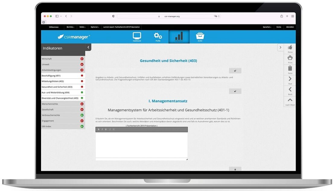Ob CSR-Berichtspflicht, Lieferkettengesetz, Klimareporting oder zunehmende Auskunftspflicht im Rahmen von Ausschreibungen und Lieferantenbewertungen – die Anforderungen an ökologische, soziale und ökonomische Informationen steigen in immer mehr Unternehmen. Auch in Ihrem? Die prämierte Software CSRmanager erlaubt selbständig, einfach und effizient Nachhaltigkeitsdaten, Audits und Risikomanagement zu bearbeiten, zu evaluieren und regelkonform zu berichten.