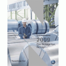 Globale Finanz- und Wirtschaftskrise, dramatischer Auftragsrückgang und gesunkene Stahlpreise - der zweite Nachhaltigkeitsbericht „Das Richtige tun. Richtig?“ von ThyssenKrupp Steel steht in diesem Jahr im Zeichen der Krise. Der Stahlkonzern wurde von dem Einbruch der Weltwirtschaft „extrem getroffen“, sagt Edwin Eichler, neuer Vorstandsvorsitzender von ThyssenKrupp Steel. Und trotzdem zeige der Bericht, dass der Gedanke der Nachhaltigkeit „auch in für das Unternehmen schwierigen Konjunkturzeiten weiter verfolgt wird“, so das Unternehmen.