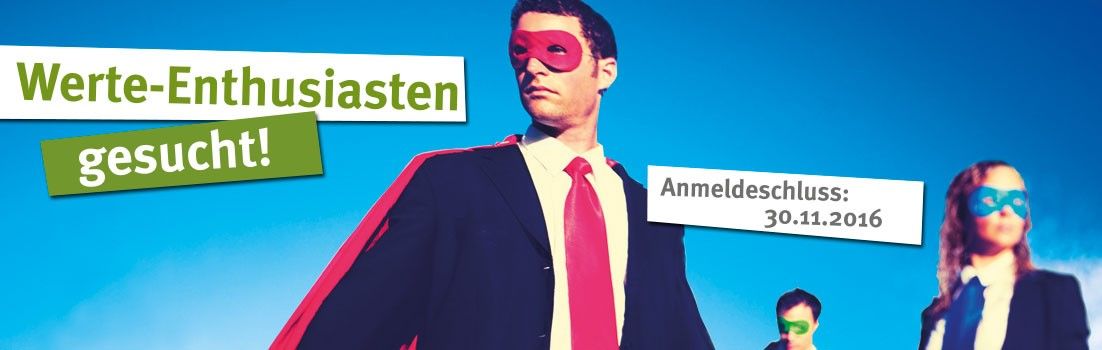 Sie sind ein Werte-Held, -Idealist, -Vorreiter und -Enthusiast? Dann bewerben Sie sich bis zum 30. November 2016 bei der Aktion WERTE IM MITTELSTAND. Unter allen Teilnehmern werden 50 exklusive Mitgliedschaften für die Werte-Allianz ETHICS IN BUSINESS im Wert von jeweils 6.000 Euro verlost. Organisatoren des Wettbewerbs sind die Initiative ETHICS IN BUSINESS und UmweltDialog.
