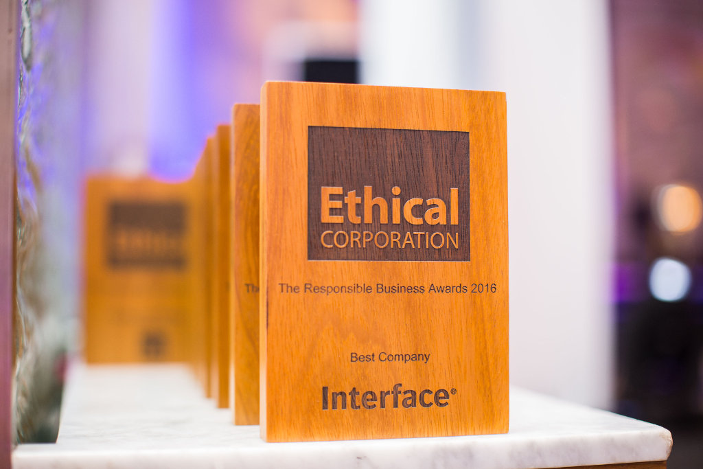 Global modular flooring manufacturer, Interface, has been recognised for its achievements in sustainability at the prestigious Ethical Corporation, Responsible Business Awards 2016. Interface was awarded Best Company and its Chairman and CEO, Dan Hendrix, was honoured as CEO of the Year, with the award accepted on his behalf by Rob Boogaard, President and CEO of Interface EMEA.