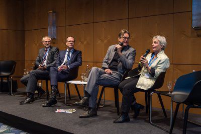 Rege diskutiert wurde die Ressourceneffizienz auch im eigenen Dialogforum „Effizienz neu denken – Ressourcen zwischen Sparen und Wiederverwerten“ im Rahmen des Kongresses zum Nachhaltigkeitstag. Vertreten durch den IBU-Vorstandsvorsitzenden Hans Peters wurde gemeinsam mit den Nominierten des Sonderpreises das nachhaltige Bauen und das Thema Ressourceneffizienz aus Perspektive verschiedener Branchen erörtert. Ebenfalls beteiligt waren die Arbeitsgemeinschaft Mauerziegel, vertreten durch Dr. Thomas Fehlhaber, und Dr. Eva Schmincke als Vertreterin der Umweltverbände in der Europäischen Normung. Beispielsweise könne man mineralische und nachwachsende Rohstoffe nicht einfach gegeneinanderstellen. Oberflächlich betrachtet schneiden letztere oft besser ab. „Doch auch nachwachsende Rohstoffe sind nicht beliebig vorhanden“, betonte Dr. Thomas Fehlhaber. „Es ist zu bedenken, dass nachwachsende Rohstoffe Flächen brauchen, die auch eine Ressource darstellen“, bestätigte Dr. Eva Schmincke. Auch beim Leitziel der Ressourceneffizienz müssen die verschiedenen Aspekte der Nachhaltigkeit berücksichtigt werden: Soziale, ökonomische und ökologische Indikatoren. „Diese sind immer gemeinsam zu betrachten, wenn es darum geht, nachhaltigere Wege einzuschlagen“, darin waren sich die Gesprächspartner einig.