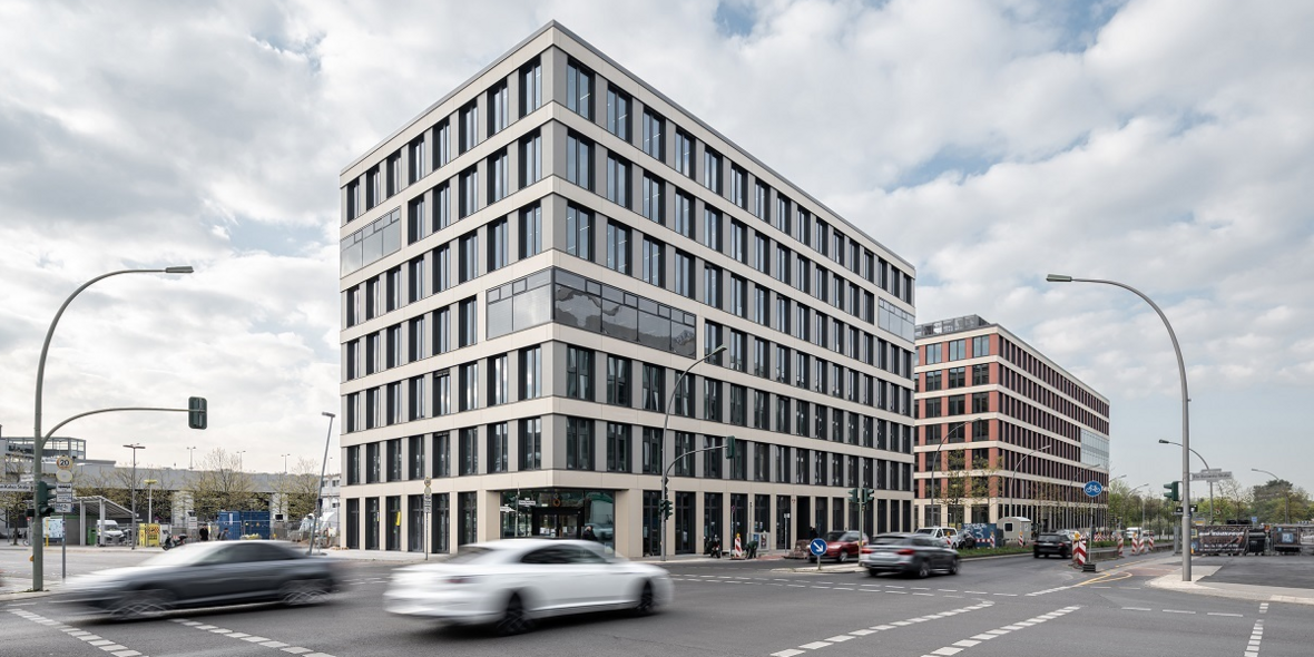 Innerhalb von nur 24 Monaten wurden durch die Arbeitsgemeinschaft Rhomberg Systembau, Zech Bau und Cree Buildings so auf einem rund 10 000 Quadratmeter großen Grundstück direkt am Südkreuz in Tempelhof-Schöneberg bis März 2022 zwei sieben- beziehungsweise achtstöckige Büro- und Geschäftsgebäude errichtet. Die gleichmäßig gerasterte, mit Faserzementplatten beplankte Fassade lässt zunächst nicht auf die innovative Holzhybridbauweise schließen. Erst im Innenraum ist der Hauptwerkstoff Holz präsent. Neben der sichtbar gelassenen Holzkonstruktion sorgen bodentiefe Fenster, Türen und Handläufe aus Holz für eine klare und freundliche Architektursprache. Hauptattraktion ist das zentrale Atrium im 20 000 Quadratmeter großen, achtstöckigen Carré-Gebäude. Ein transparentes Folienkissendach sorgt hier für reichlich Tageslicht in allen Bereichen. Vier große Plattformen, die wie Bäume aus dem Boden des Atriums entspringen, verbinden über Treppen und Brücken das Atrium mit den Bürogeschossen und bieten Raum für formelle und informelle Kommunikation. Mieter des Carré-Gebäudes ist der Energieversorger Vattenfall mit seiner neuen Deutschland-Zentrale. Im kleineren Solitär ist der Photovoltaikanbieter Q Cells ansässig, das Erdgeschoss wird hier mit Gastronomie und Einzelhandel bespielt. Bauherr ist der Projektentwickler Edge, die Pläne stammen von Tchoban Voss Architekten, „granz und zecher Architekten“ sowie Buro Happold.
