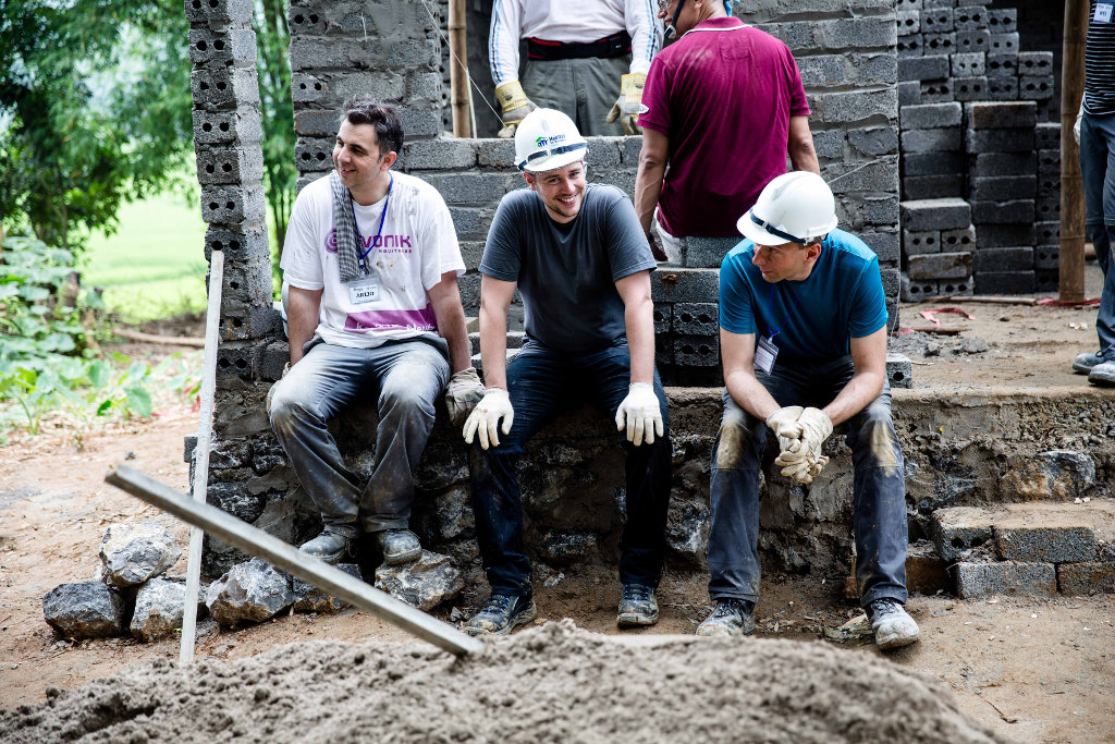 Die Menschen dort erhalten sie in diesem Frühjahr von gut 60 Mitarbeitern des Spezialchemieunternehmens Evonik. Bereits im Vorjahr hatten sich knapp 70 Mitarbeiterinnen und Mitarbeiter aus unterschiedlichen Ländern in der Region zusammengefunden, um im Rahmen der TalentDays jeweils eine Woche mit Muskelkraft und Maurerkellen mitanzupacken. Binnen sechs Wochen entstanden so in Zusammenarbeit mit der Hilfsorganisation "Habitat for Humanity" und der lokalen Bevölkerung sechs neue, stabile Häuser.