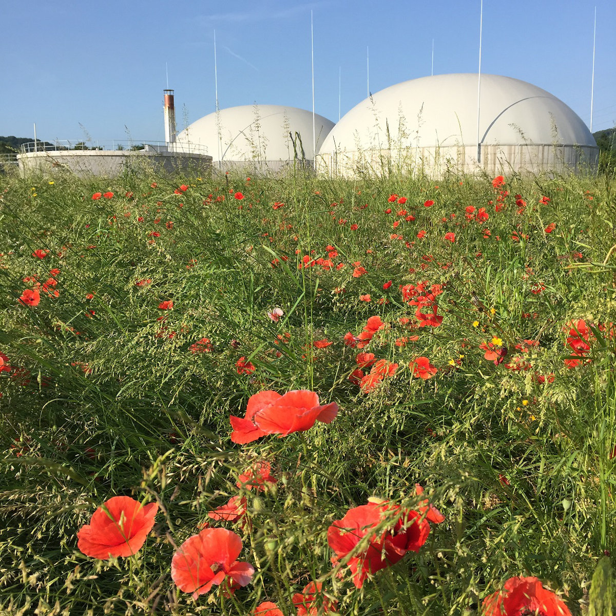 Das ECO-Broye-Programm stützt sich aber nicht nur auf eine nachhaltigere Landwirtschaft, sondern zielt auf einen ganzheitlichen Ansatz ab. Daher steht direkt neben der Henniez-Fabrik eine Biogasanlage, die der Energieversorger Groupe E Greenwatt betreibt. Jeden Tag werden dort rund 60 Tonnen Dung, die bei den landwirtschaftlichen Betrieben anfallen, gemeinsam mit anderen Abfällen wie zum Beispiel Kaffeeresten aus Nespresso-Kapseln in Fermenter eingespeist, erklärt Vincent Braillard, Projekt Manager Renewable Energy von Groupe E Greenwatt. Dort braucht das Gemisch etwa 20 Tage bis es fermentiert ist. Das dabei entstehende Methan wird in zwei Gasmotoren geleitet, die das Gas in Elektrizität und Wärme umwandeln. Pro Jahr produziert die Biogasanlage dadurch zirka 6,8 Gigawattstunden Strom, was dem Stromverbrauch von 1.500 Schweizer Haushalten entspricht, sowie acht Gigawattstunden Wärme. Die Wärme wird sowohl für den Betrieb der Henniez-Fabrik als auch zur Trocknung von Nespresso-Kapseln verwendet. Am Ende des Fermentationsprozesses entsteht schließlich „digestat“, was die Landwirte als natürlichen hocheffektiven und geruchlosen Dünger verwenden. Dadurch könne kontrolliert werden, was auf den Boden kommt, meint Braillard. Auch die Qualität des Wassers werde so besser.