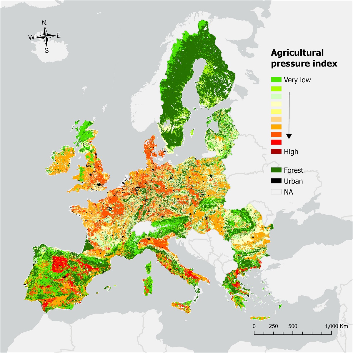 Das Ergebnis: Die Art der Landwirtschaft ist mit entscheidend für den Zustand der Gewässer (siehe Abbildung). „Am stärksten wirkt sich die Intensivlandwirtschaft aus“, sagt Schürings. Der Experte für Aquatische Ökologie ist Erstautor der Studie. „Dazu zählt der Bewässerungsfeldbau, wie er in Südeuropa beispielsweise in Spanien, Portugal und Italien betrieben wird, und der intensive Einsatz von Pflanzenschutzmitteln und Dünger auf Flächen in Westeuropa. Das ist vor allem in Frankreich, den Niederlanden, in Belgien, in Deutschland oder Großbritannien verbreitet.“