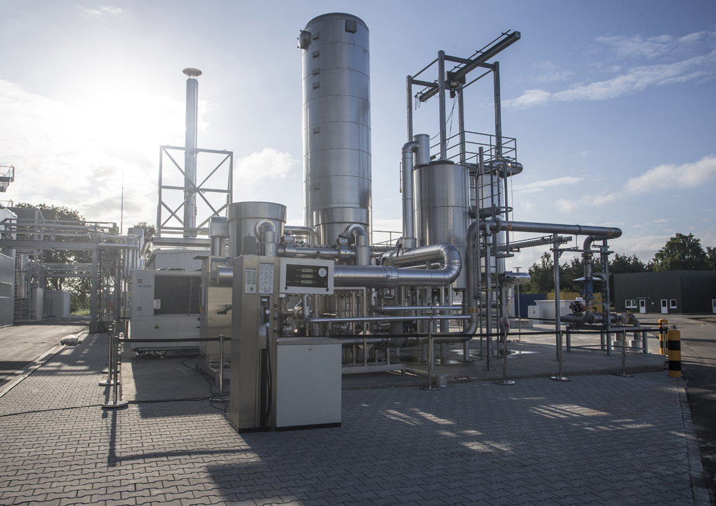 Und so funktioniert die Herstellung von e-gas: Der Weg zum Endprodukt führt über zwei wesentliche Prozessschritte: Zunächst spalten sogenannte „Elektrolyseure“ mithilfe von regenerativ erzeugtem Strom aus Wind oder Sonnenenergie Wasser in die Bestandteile Sauerstoff und Wasserstoff. Im Methanisierungsreaktor reagiert der gewonnene Wasserstoff dann mit Kohlendioxid (CO2) zu synthetischem Methan. Das eingesetzte CO2 wiederum ist ein Abfallprodukt aus einer nahe gelegenen Biogasanlage.