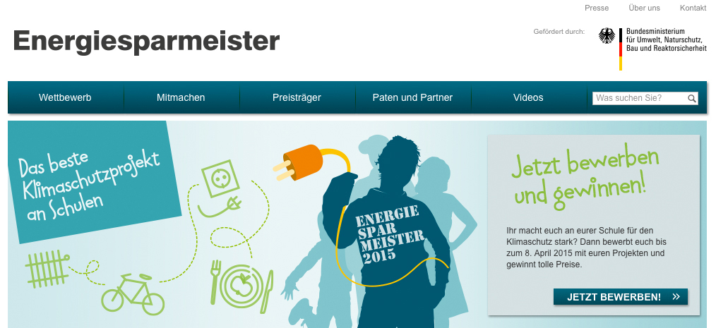 Auf der Wettbewerbsseite www.energiesparmeister.de können sich Schüler und Lehrer aller Schultypen bundesweit bis zum 8. April 2015 einzeln oder als Team mit ihren Projekten bewerben. Mitte Mai 2015 wählt eine Experten-Jury die 16 Gewinner aus den Bundesländern aus, deren Engagement mit Geld- und Sachpreisen im Gesamtwert von insgesamt 50.000 Euro honoriert wird. Welche Schule den begehrten Titel "Energiesparmeister Gold" erhält und damit nicht nur Bundessieger wird, sondern auch ein zusätzliches Preisgeld gewinnt, entscheiden Lehrer, Schüler und deren Freunde im Juni via Internetabstimmung.