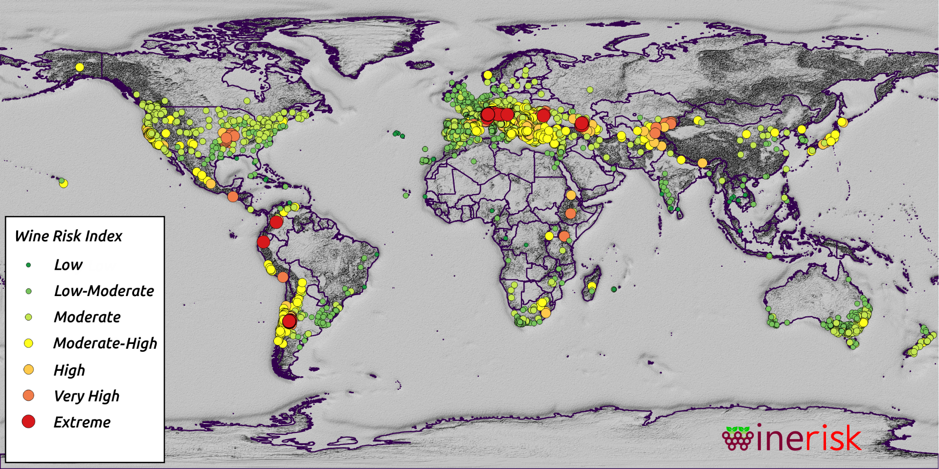 Die Studie erfasst mehr als 7 500 Weinbaugebiete in 131 Ländern. Weltweit gibt es kein Weinbaugebiet, das nicht von Extremwetter oder Naturkatastrophen bedroht ist. Ereignisse wie Frost, Hagelstürme, Überschwemmungen, Hitze, Dürre, Wald- und Buschbrände sowie Erdbeben kosten die weltweite Weinindustrie konservativen Schätzungen zufolge jedes Jahr mehr als zehn Milliarden US-Dollar durch zerstörte Vermögenswerte, Produktionsausfälle und entgangene Gewinne.