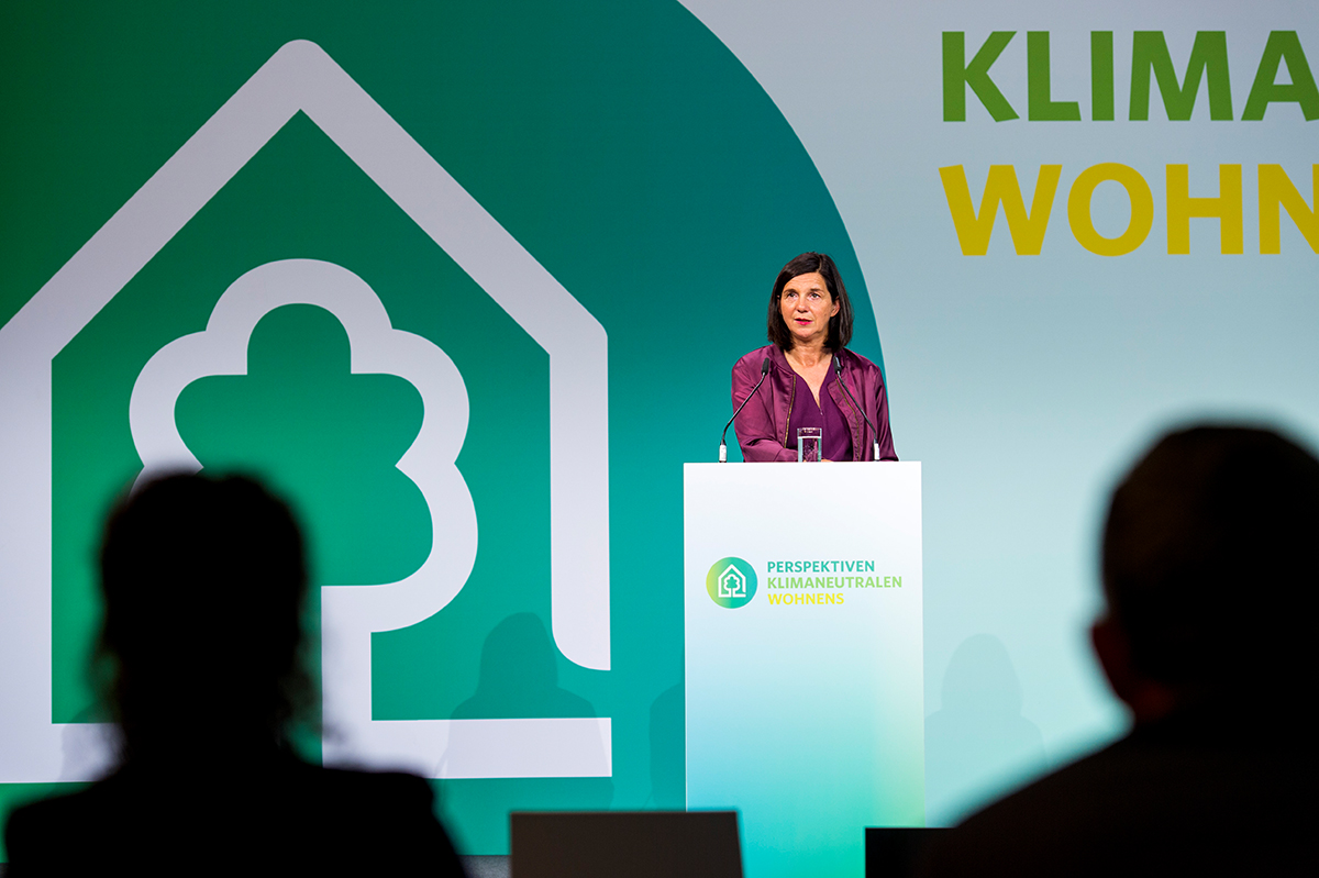Katrin Göring-Eckardt, Vorsitzende der Bundestagsfraktion von Bündnis90/Die Grünen rief in ihrer Keynote dazu auf, „Transformation so denken, dass man die Herausforderungen gemeinsam angeht. Wohnen ist die soziale Frage unserer Zeit. Wohnen ist aber auch eine ökologische Frage.“ Deshalb sollten Baustoffe besser genutzt werden. Urban Mining und Kreislaufwirtschaft seien hierfür die richtigen Ansätze. Und es gelte, für Alle bezahlbare Lebens- und Wohnräume in den Innenstädten zu erhalten. „Wir brauchen die 15-Minuten-Stadt“, so Göring-Eckardt. Zugleich drängte sie die Industrie: Da Deutschland seine Klimaschutzziele stärker als bisher gedacht verfehle, drohen bis 2030 zusätzliche EU-Strafzahlungen in Milliardenhöhe. Dazu tragen auch die Immobilien bei.