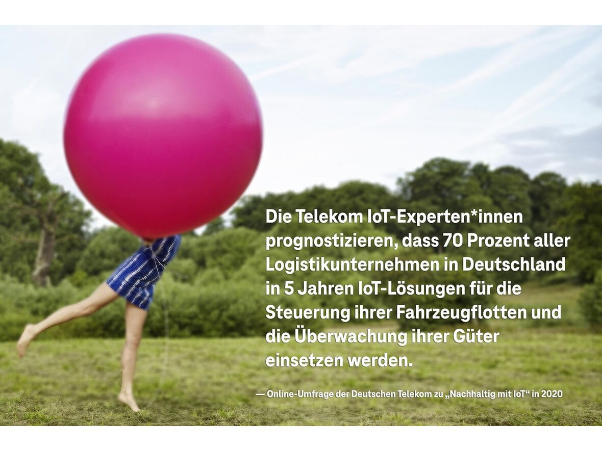 Beim Thema Klimaschutz ist das Potenzial von CO2-Einsparungen in der Logistikbranche besonders hoch. Das Internet der Dinge kann helfen, Lieferketten und Logistikprozesse effizienter zu machen. Die IoT-Experten der Telekom prognostizieren, dass in fünf Jahren durchschnittlich 70 Prozent der Logistik-Unternehmen in Deutschland IoT-Lösungen für die Steuerung ihrer Fahrzeugflotten und die Überwachung ihrer Güter einsetzen.