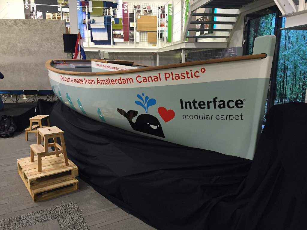 Um die Initiative zu stärken, hat Interface zusammen mit Plastic Whale ein eigenes, einzigartiges Boot gestaltet und gebaut. Es besteht aus fast 7.000 der über 50.000 Plastikflaschen, die bereits aus den Grachten Amsterdams gefischt wurden. Das Boot soll täglich dazu genutzt werden, noch mehr Müll aus den Grachten zu fischen und gleichzeitig auf die Auswirkungen von Plastik in unseren Gewässern aufmerksam machen.