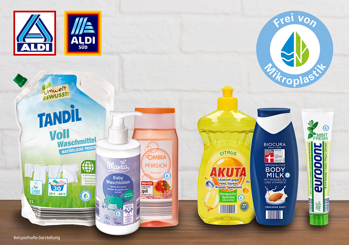 ALDI Nord und ALDI SÜD kennzeichnen zukünftig ihre Produkte, die frei von Mikroplastik sind. Schon seit 2014 befreien die Discounter ihre Kosmetik- und Pflegeprodukte sowie Wasch- und Reinigungsmittel schrittweise von den kleinen Plastikteilchen. Bereits jetzt enthalten rund 180 Produkte weder festes Mikroplastik noch flüssige synthetische Kunststoffe, die nicht biologisch abbaubar sind.
