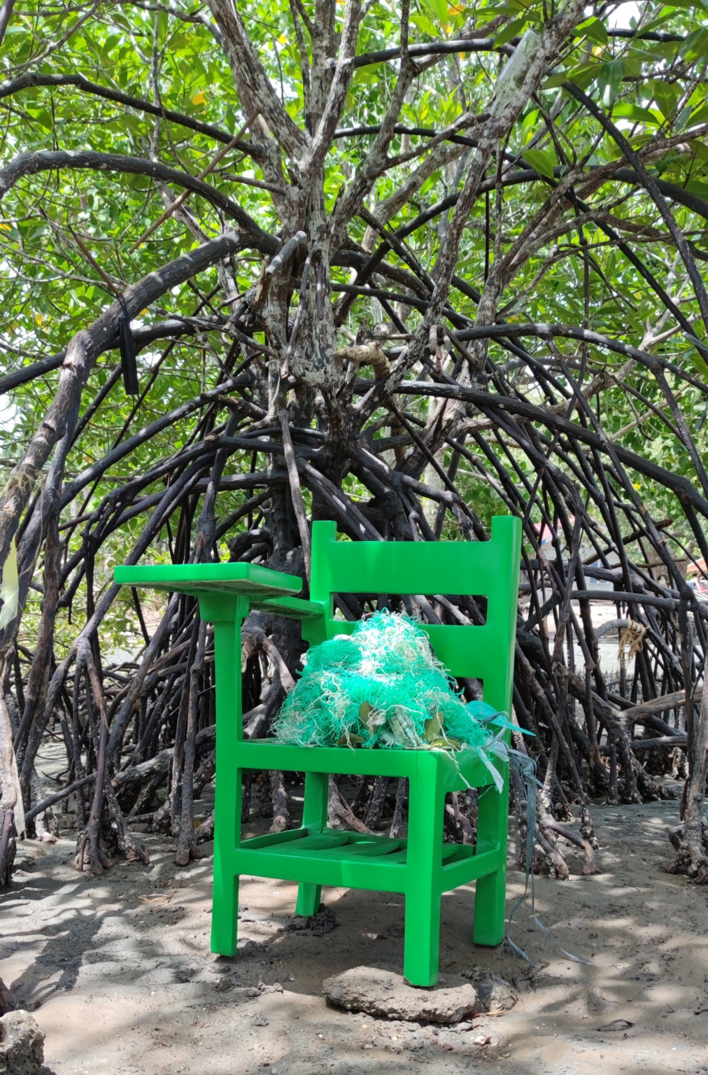 In Zusammenarbeit mit der Recyclingcompany in Davao entstehen aus circa 30 Kilogramm Meeresmüll stabile und langlebige Stühle für Schulen, die ideal ins tropische Klima passen, das den Stühlen aus billigem Holz schnell zusetzt.