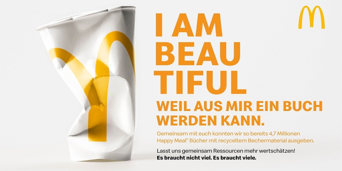 Mit dem Claim „Es braucht nicht viel. Es braucht viele.“ startet McDonald’s die bisher größte Werbekampagne in Deutschland, in der nicht die Produkte, sondern deren leeren Verpackungen im Fokus stehen. Getränkebecher, Pommesbox & Co. werden so selbst zu Nachhaltigkeits-Botschaftern und erklären in den Kampagnen-Motiven, warum sie „beautiful“ und mehr als „nur Müll“ sind – nämlich wertvolle Rohstoffe. Mit den Motiven im OOH- und Digitalbereich sowie in den Restaurants ruft der Systemgastronom seine Gäste dazu auf, Ressourcen noch mehr wertzuschätzen, indem Verpackungen nach Gebrauch ordnungsgemäß weggeworfen werden. Denn nur wenn sie richtig entsorgt werden, können sie als Wertstoffe in den Kreislauf zurückgeführt werden: So werden die leeren McDonald’s Getränkebecher in den Restaurants beispielsweise separat gesammelt und zu Papier für Happy Meal Bücher verarbeitet. Grundlage für die Recyclingfähigkeit der Verpackungen sind unter anderem die verschiedenen Verpackungsoptimierungen, die der Systemgastronom in den letzten Jahren vorgenommen hat. „Mit dieser Kampagne machen wir nun unsere leeren Verpackungen zu Werbestars und weisen damit plakativ darauf hin, wie schön diese sein können, wenn aus ihnen durch eine ordnungsgemäße Entsorgung wieder etwas Neues entstehen kann“, so Tomasz Debowski, Marketingvorstand von McDonald’s Deutschland. „Wir sind überzeugt davon, dass wenn wir alle unsere Ressourcen ein wenig mehr wertschätzen, wir gemeinsam einen echten Unterschied machen können. Denn oft braucht es nicht viel. Es braucht nur viele.“ In den kommenden Wochen folgen weitere Aktivierungen, die den Mediamix komplettieren und die Botschaft der Kampagne gemeinsam mit prominenter Unterstützung transportieren.