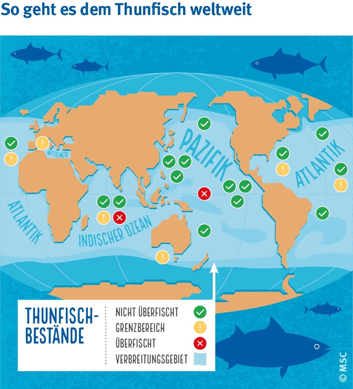 1. Die meisten Thunfischbestände sind nicht überfischt