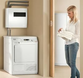 Mit der Markteinführung des weltweit ersten Solartrockners "T 8881 S EcoComfort“ ist den Güterslohern genau das gelungen. Dieser nutzt direkt die Sonnenenergie, ohne sie in Strom umzuwandeln. Der Wäschetrockner ist an die Heizungsanlage des Hauses angeschlossen, welche wiederum von einer Solarthermie-Anlage über einen Schichtenspeicher mit warmem Wasser versorgt wird: „Durch das geschlossene Kreislaufsystem zwischen Solartrockner und Speicher arbeitet das System weitgehend ohne Temperaturverluste, denn die zum Trocknen entnommene Wärmemenge wird zum Großteil im Kondensierungsprozess dem Wasser im Schichtenspeicher wieder zugeführt“, erklärt Miele. Ein weiterer positiver Effekt ist, dass der Trockner im Sommer zur Auslastung der Solaranlage beiträgt. Im Winter wiederum lässt sich das Wasser im Schichtenspeicher auch durch Biomasse oder Erwärme erhitzen. Im Trockenergebnis mit herkömmlichen Trocknern vergleichbar, ist der Solartrockner allerdings zirka 500 Euro teurer: „Bei üblicher Nutzung in einem Vier-Personen-Haushalt amortisieren sich die Mehrkosten des Gerätes innerhalb von gut sieben Jahren.“ Darüber hinaus plant das Unternehmen, weitere Hausgeräte anzubieten, die solarerwärmtes Wasser nutzen, wie beispielsweise Geschirrspüler oder Waschmaschinen.