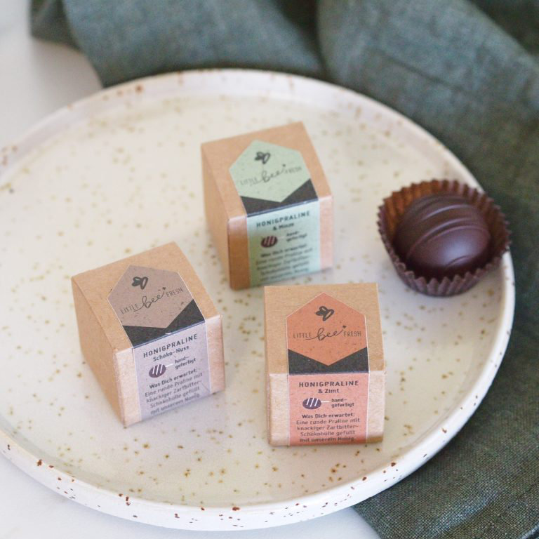 Hausgemachten Bio-Honig aus der Little Bee Fresh-Manufaktur am Bodensee gibt es nicht nur in verschiedenen Geschmacksrichtungen, sondern auch mit natürlichen Aromen wie Zimt, Vanille und Kaffee versetzt. Jede Sorte hat ihre ganz eigene Note und findet ihre Liebhaber. Die Honigpralinen in den Geschmacksrichtungen Zimt, Minze und Schoko-Nuss sind frei von Industriezucker und sind selbstverständlich nachhaltig verpackt.
