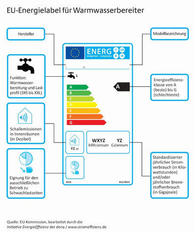 Das Etikett ist für neue Heizgeräte und Warmwasserbereiter bis 70 Kilowatt (kW) Leistung, für Warmwasserspeicher bis einschließlich 500 Liter Speichervolumen sowie für Produktkombinationen, sogenannte Verbundanlagen, verpflichtend. Dieses geht auf die 2009 beschlossene Ökodesign-Richtlinie des Europäischen Parlaments und des Europäischen Rates zurück. Ziel ist, das Treibhausgas CO2 vermindert auszustoßen. Geräte aus Lagerbeständen dürfen noch ohne das Label verkauft werden.