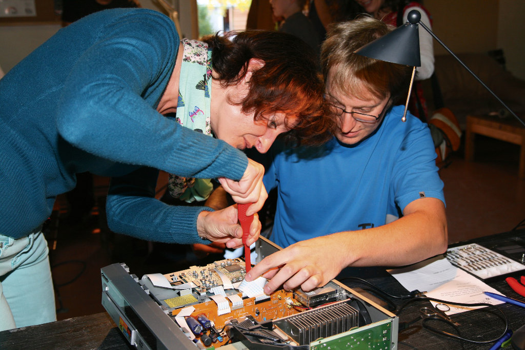 Auf diese Weise werden Kaffeemaschinen, Möbel oder Handys auf Vordermann gebracht und ihre Nutzungsdauer verlängert. Ganz beiläufig bieten die defekten Geräte im aufgeschraubten Zustand idealen Anschauungsunterricht was Aufbau und Funktionsweise angeht. „Repair-Cafés sind ein wichtiger Bestandteil der Maker-Bewegung“, sagt Daniel Bachfeld Chefredakteur vom Make-Magazin. Wer selbst eine Initiative gründen will, findet auf der Plattform reparatur-initiativen.de eine Fülle nützlicher Tipps.