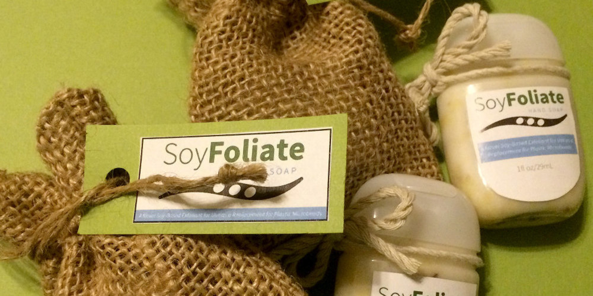 Abgänger der Purdue University haben mit "SoyFoliate" ein Unternehmen gegründet, um ihre Entwicklung auf den Markt zu bringen: eine Soja-Alternative zu Plastik-Mikroperlen (auch: Mikroplastik). Mit letzteren belasten viele Kosmetik- und Körperpflegeprodukte die Umwelt und letztlich auch Speisefisch. Die umweltfreundlicheren Soja-Mikroperlen könnten somit letztendlich auch für den Menschen gesünder sein.