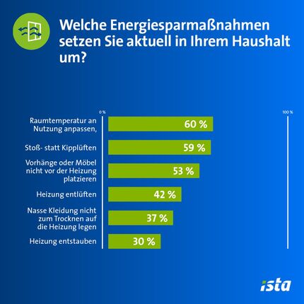 Darauf deutet auch die Studie hin. Demnach achten nur knapp über 50 Prozent der Deutschen darauf, dass keine Vorhänge oder Möbel vor der Heizung platziert sind. Dabei verhindern Gegenstände vor den Heizkörpern, dass die Luft zirkulieren kann. Die Wärme kann sich somit nicht im Raum verteilen und dieser heizt sich schlechter auf. Der gleiche Effekt zeigt sich, wenn Wäsche auf der Heizung getrocknet wird. Nur jeder Dritte (37 Prozent) gab an, dies nicht zu tun. Zudem erhöht das Trocknen der nassen Kleidung auf dem Heizkörper die Gefahr, dass sich Schimmel bildet. Beim Lüften hingegen achtet die Mehrheit der Deutschen (59 Prozent) bereits heute darauf, Energie zu sparen, indem sie Stoß- anstatt Kipplüften. Gespart wird auch bei der Raumtemperatur. So senken 60 Prozent der Deutschen die Temperatur in Räumen, in denen sie sich nicht so häufig aufhalten – beispielsweise im Schlafzimmer. Damit sind enorme Einsparungen möglich: Die Reduktion der Raumtemperatur um ein Grad spart rund sechs Prozent Energie ein.