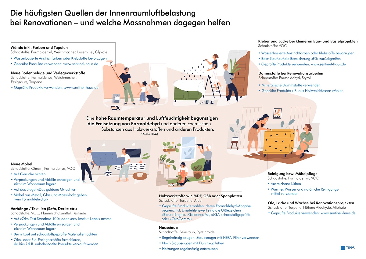 Im Frühling und Sommer schlüpfen zudem viele in die Handwerkerhosen und verschönern ihr Zuhause. Es werden neue Böden verlegt, Wände gestrichen oder tapeziert oder neue Möbel fürs Kinderzimmer gekauft. Kann man sich dabei potenzielle Wohngifte ins Haus holen?