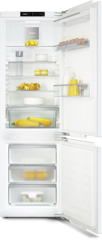 Weitere Ausstattungsmerkmale sind eine geräumige Schublade mit regulierbarer Luftfeuchtigkeit für Obst und Gemüse, eine helle LED-Beleuchtung und spülmaschinengeeignete Innentürabsteller. Die Türschließdämpfung „SoftClose“ erhöht den Bedienkomfort. Wie alle Kühlgeräte von Miele ist auch der KFN 7734 C vernetzungsfähig.