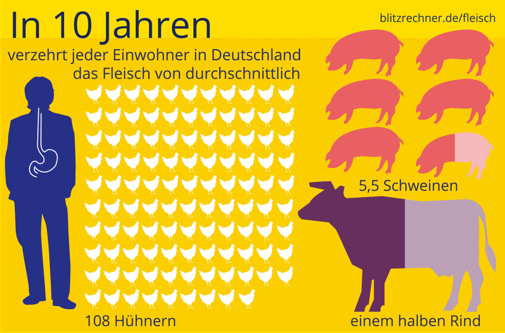 Ein Online-Tool will Abhilfe schaffen: Wie viel Wasser, Antibiotika, Land und Futtermittel sind für meinen ganz persönlichen Fleischkonsum notwendig? Was ist mein Anteil an der Umweltbelastung? Und wie viele Ressourcen können eingespart werden, wenn jede zweite oder dritte Fleischmahlzeit durch beispielsweise Tofu ersetzt wird?