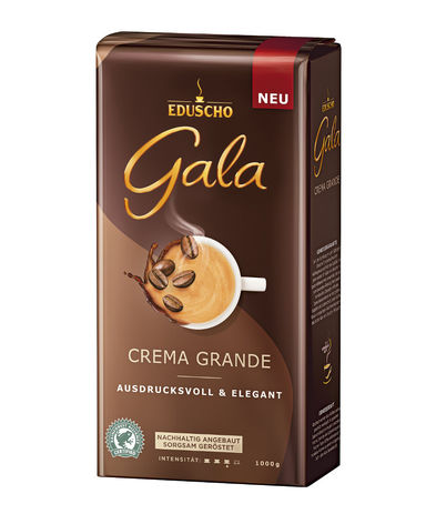 Das neue Premium-Sortiment Gala GRANDE von Gala von Eduscho ist seit dem 17. Oktober 2016 in der 1-kg-Verpackung als ganze Bohne zum Preis von 12,99 Euro in vielen Supermärkten erhältlich.
