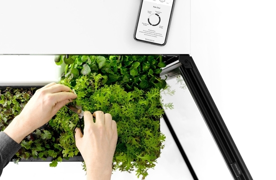 Weil alle Einflussfaktoren per Cloud gesteuert werden, herrscht immer Frühling in dem smarten Gewächsschrank. Die automatische Bewässerung versorgt die Pflanzen über einen integrierten Tank mit Wasser und Nährstoffen, wobei speziell entwickelte LEDs mit allen relevanten Wellenlängen des Sonnenspektrums für optimale Licht- und somit Wachstumsverhältnisse sorgen. So entstehen Pflanzen mit einer bis zu 30 Prozent höheren Nährstoffdichte und reich an Antioxidantien, Vitaminen und Mineralien.