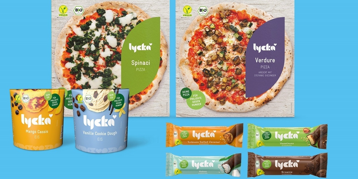 Nachhaltig, bio und vegan sind die innovativen Eiskreationen von lycka, die seit 2020 bei ALDI SÜD und aktionsweise auch bei ALDI Nord erhältlich sind. Mit veganen Pizzen und Schokoriegeln erweitert ALDI nun sein Angebot an lycka Produkten. Das Besondere dabei: Für jedes verkaufte lycka-Produkt spendet das Start-up lycka für ein soziales Projekt gegen Hunger in Malawi.