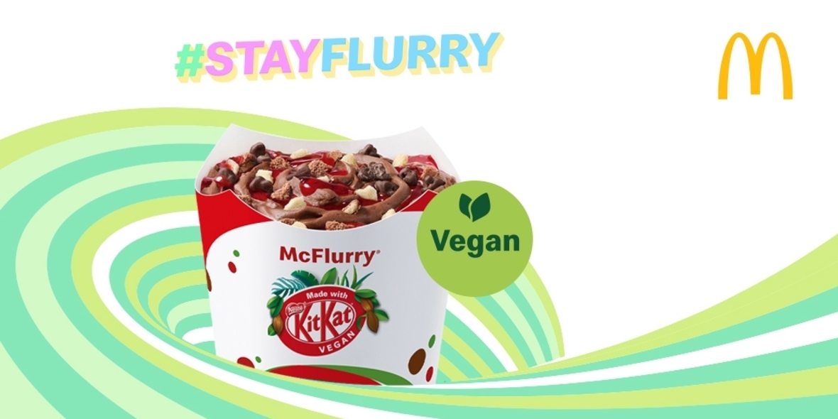 Bei McDonald’s Deutschland gibt es neben McFlurry Original und McFlurry Frozen Yogurt erstmals auch eine dauerhafte Alternative für Veganer im Sortiment: Die neue Schoko-Softeisbasis kommt ohne tierische Inhaltsstoffe aus und kann mit wechselnden veganen Toppings kombiniert werden.