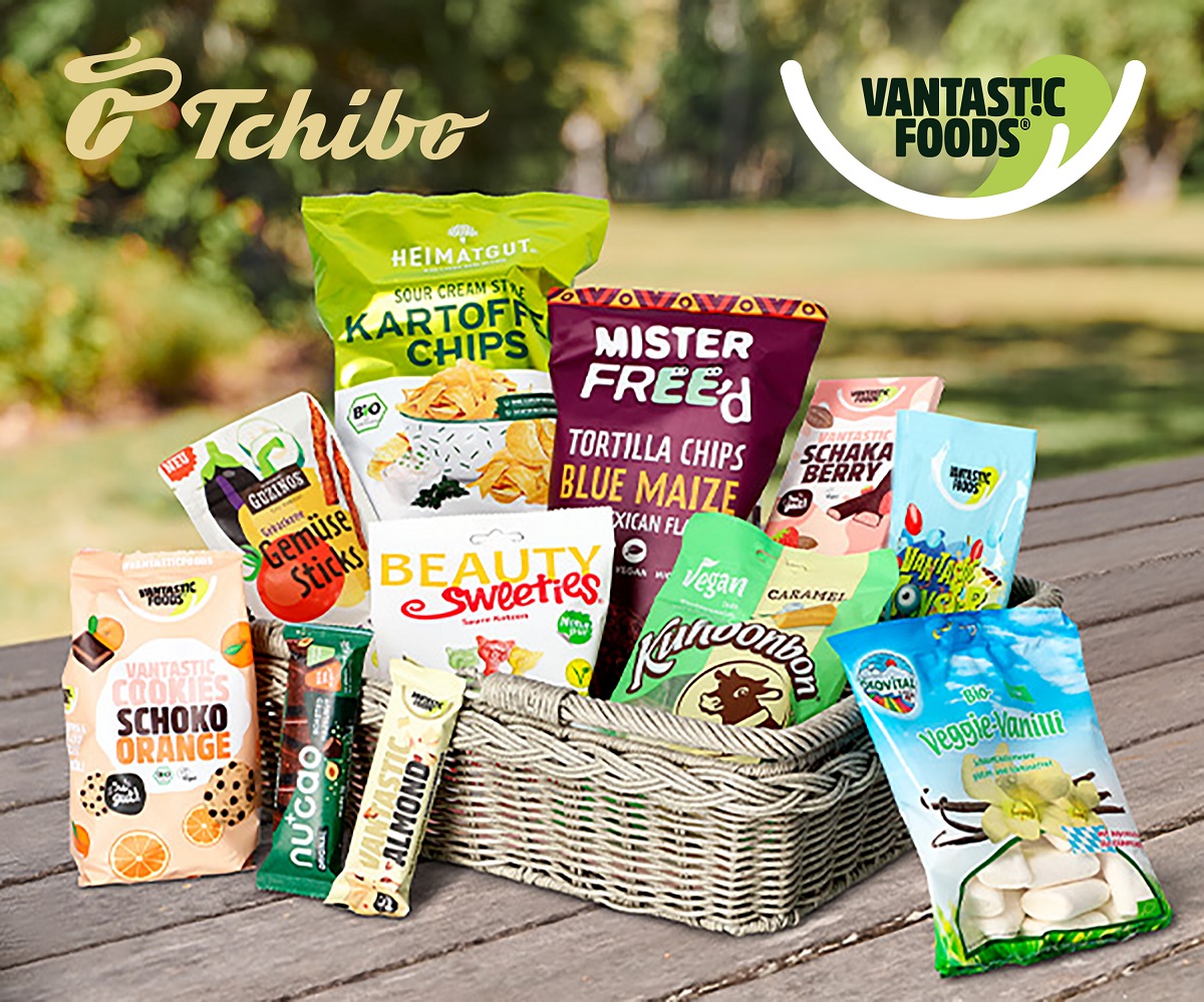 Die Boxen werden exklusiv für Tchibo von Vantastic foods zusammengestellt. Der größte Onlineshop für rein pflanzliche Lebensmittel führt mehr als 1.500 Produkte im Sortiment.