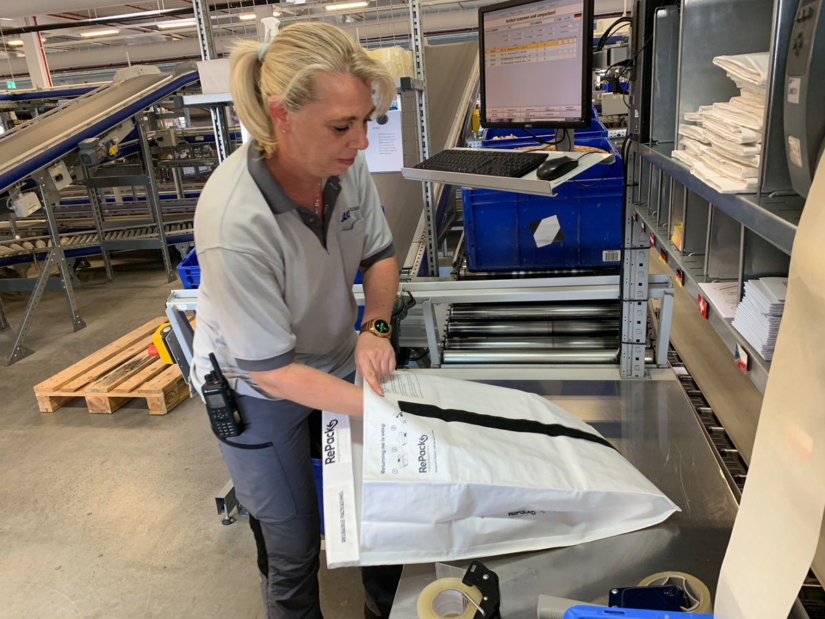 Die RePack-Mehrwegversandtasche besteht aus recyceltem Kunststoff, kann vom Kunden auf Briefgröße zusammengefaltet und über die Post frei zurückgesendet werden. Dadurch ist sie 20 Mal und öfters im Umlauf. RePack übernimmt für Tchibo und Avocadostore die Rückführungslogistik, den Reinigungs- und Aufbereitungsservice – außer bei Retouren. Diese gehen direkt an die Versandhändler zurück. Bei diesem Test geht es um Antworten auf folgende Fragen: Wie können wiederverwendbare Versandtaschen in die eigene Logistik eingeführt werden? Sind sie praktikabel? Wie ist die Akzeptanz beim Kunden? Schickt er sie zurück? Und wäre er sogar bereit dafür einen Aufpreis zu zahlen? „Wenn es im Handel so weitergeht, knacken wir in vier Jahren die Eine- Million-Tonnen-Marke für Versandverpackungsmüll“, sagt Lisa Rödig vom Hamburger Institut für Ökologie und Politik (Ökopol). „Eine Lösung, um diesen Ressourcenverbrauch einzudämmen, ist, die Einweg- mit Mehrwegverpackungen im Versandhandel zu ersetzen.“