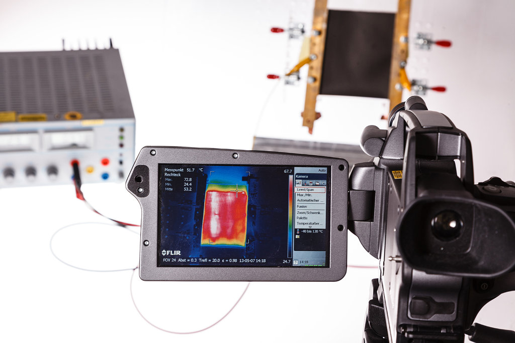 Wer im Elektroauto nicht frieren möchte, muss Abstriche bei der Reichweite machen, denn die Heizung frisst einen beträchtlichen Teil des Stroms. Fraunhofer-Forscher zeigen auf der IAA den Demonstrator einer besonders energieeffizienten Heizung für Elektroautos: Eine beschichtete Folie, die eine flächige Wärmestrahlung erzeugt.