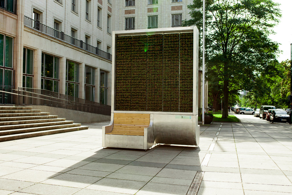 Die Konstruktion ist eine patentierte freistehende Vertikalbegrünung, die die Umgebungsluft von Schadstoffen befreit und über eine Umweltleistung von 275 herkömmlichen urbanen Bäumen verfügt. Der Pflanzenfilter kombiniert spezielle, vertikal installierte Mooskulturen mit einer eigens entwickelten IoT-Technologie für deren optimale Versorgung. Weltweit atmen 90 Prozent der in Städten lebenden Menschen täglich verschmutzte Luft ein. Einen Lösungsansatz für dieses globale Problem bietet das junge Unternehmen Green City Solutions mit ihrem sogenannten „CityTree“, der die lokale Luftverschmutzung in einem Umkreis von bis zu 50 Metern um bis zu 30 Prozent reduzieren kann. Acht der freistehenden Vertikalbegrünungen waren Teil der DRESDEN-concept (DDc) Wissenschaftsausstellung auf dem Dresdner Neumarkt.