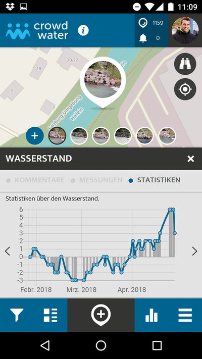 Hilfreich sind für die Forschenden vor allem Stationen mit möglichst vielen Beobachtungen und langen Zeitreihen. "Wenn an einem Flussabschnitt also bereits eine CrowdWater-Station existiert, ist es sinnvoller, hier weitere Beobachtungen hinzuzufügen als neue Stationen einzurichten", ergänzt Seibert. Neben Wasserstandsdaten an Flüssen ermöglicht die App auch, Beobachtungen zur Bodenfeuchte und an kleinen Bächen, die nur zeitweise Wasser führen, durchzuführen.