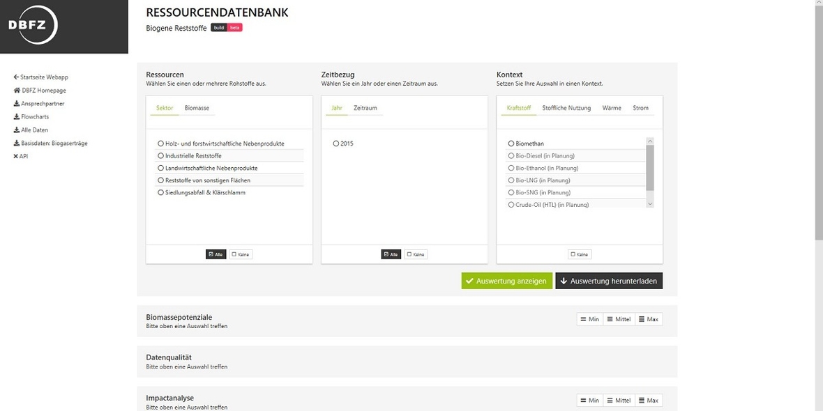 Die einfach zu bedienende Plattform, die im Rahmen des Projekts „Arbeitsgruppe Biomassereststoffmonitoring“ (AG BioRestMon, FKZ 22019215) erarbeitet wurde, bietet interessierten Nutzern einen direkten, langfristigen und kostenfreien Zugriff auf aktuelle Forschungsergebnisse im Bereich der Bioenergie und Bioökonomie. Die vom Deutschen Biomasseforschungszentrum (DBFZ) entwickelte Ressourcendatenbank bietet umfangreiche Informationen für aktuell 77 Einzelbiomassen aus den Sektoren Land- und Forstwirtschaft, Siedlungsabfälle und Klärschlamm, industrielle Reststoffe und Reststoffe von sonstigen Flächen sowie zur Nutzung biogener Reststoffe, Nebenprodukte und Abfälle. Zusätzlich werden auch mögliche Anwendungskontexte (zum Beispiel Biomethan) abgebildet.