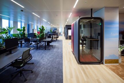 In einem ruhigeren Bereich, in der Nähe des sogenannten „Silence Space“, in dem man konzentriert arbeiten kann, wird deutlich, wovon Harlinghausen spricht. Eine der Türen führt zu einem Erholungsraum, in dem die Menschen ihren Glauben praktizieren oder meditieren können. Eine andere Tür führt zu einem weiteren privaten Ruheraum für Eltern. Aber das ist noch nicht alles. Es gibt auch einen Übungsraum, in dem man beispielsweise Yoga ausüben kann, und sogar zwei Schlafkabinen für alle, die ein Nickerchen brauchen.