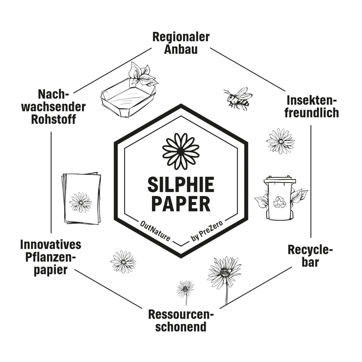 Ein Unternehmen, das Silphie-Fasern gewinnt, ist OutNature. Das Start-up wurde zu diesem Zweck vom Entsorgungsunternehmen PreZero gegründet: „Die Silphie-Pflanze ist ein nachwachsender Rohstoff mit dem Potenzial die Papier- und Verpackungsindustrie zu revolutionieren. OutNature bereitet die Silphie-Fasern auf, die anschließend zusammen mit Frisch- oder Recyclingfasern in Papierfabriken zu Papier weiterverarbeitet werden. Entsorgt werden kann das Silphie-Papier über das Altpapier und bleibt damit Teil des Papierwertstoffkreislaufs,“ erklärt PreZero.