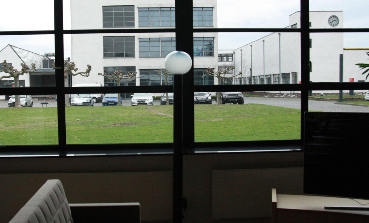 Wer heute den Campus betritt, biegt beinahe automatisch zum ehemaligen Pförtnerhaus ab, das der Interface Deutschland GmbH seit Oktober 2016 als Firmensitz dient. Durch seine exponierte Lage und den Einblick in den offen gestalteten Empfangsbereich wirkt es sofort einladend. Die sonst kühlen und klaren Muster des Bauhaus-Stils werden im Innenraum bewusst durch ein heute modernes Design aufgebrochen. Obwohl das der klassischen Bauhaus-Ordnung diametral gegenübersteht, scheint das für die Architekten beim Wiederaufbau des 1930er Jahre-Gebäudes kein Widerspruch gewesen zu sein. Im Gegenteil: Eine Nutzung im Spiegel der Zeit werde dem Bauhaus-Geist absolut gerecht, betont Tanja Künstler, Concept-Designerin bei Interface. Sie war an der Innenausstattung des neuen Hauptsitzes beteiligt – sonst übernimmt sie diese Aufgabe für die Kunden des Unternehmens.