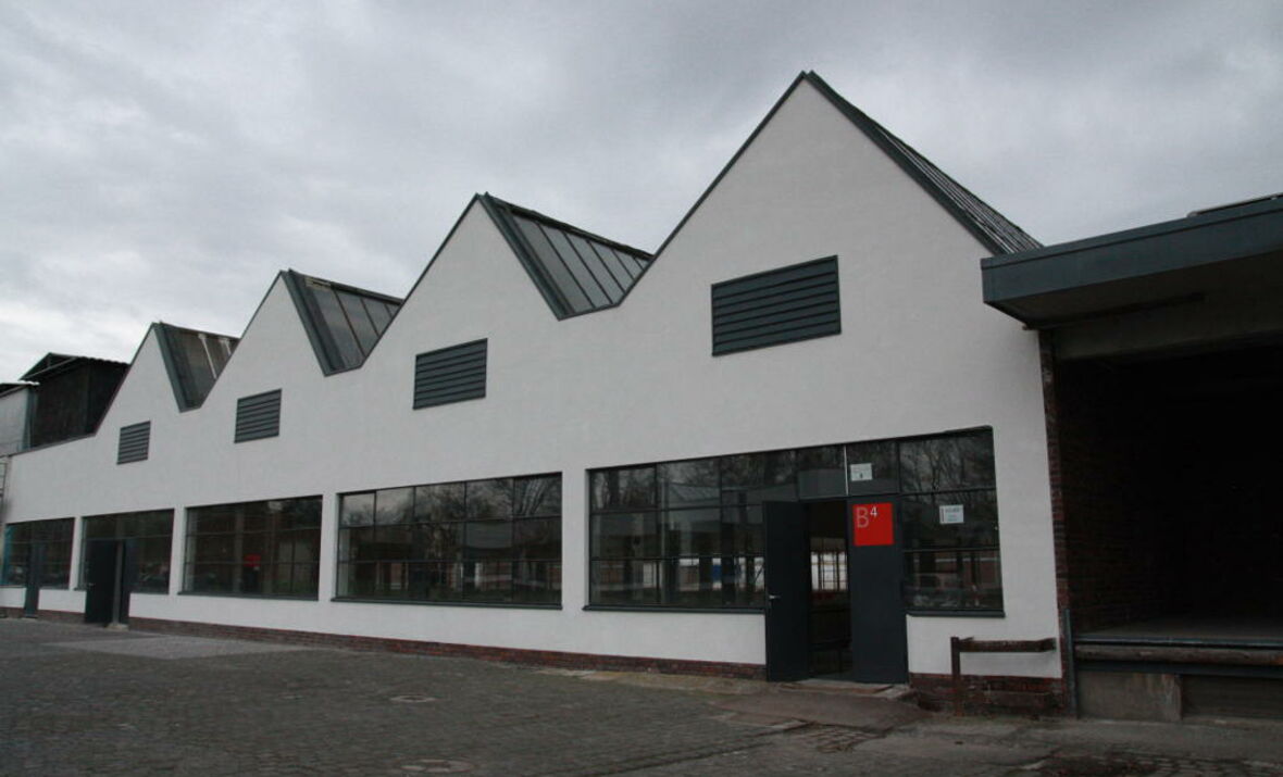 Schon der erste Blick zeigt die unverkennbare Handschrift Mies van der Rohes: Klare, geometrisch angeordnete Gebäude bilden diesen einzigartigen Campus. Im Kontrast dazu steht direkt an der Zufahrt ein imposantes Kesselhaus aus rotem Backstein. Mit seinem 30 Meter hohen Schornstein lässt es die schlichen Bauhaus-Kuben, Pförtnerhaus und den Komplex aus Uhrenturm, vierstöckigem Hauptgebäude und der lichtdurchfluteten Shed-Halle mit der namensgebenden schuppenförmigen Fensterdachkonstruktion fast modellhaft klein wirken. Der Industriepark wurde in den 1930er Jahren von Ludwig Mies van der Rohe errichtet und war lange Zeit in Besitz der Vereinigten Seidenwebereien AG.