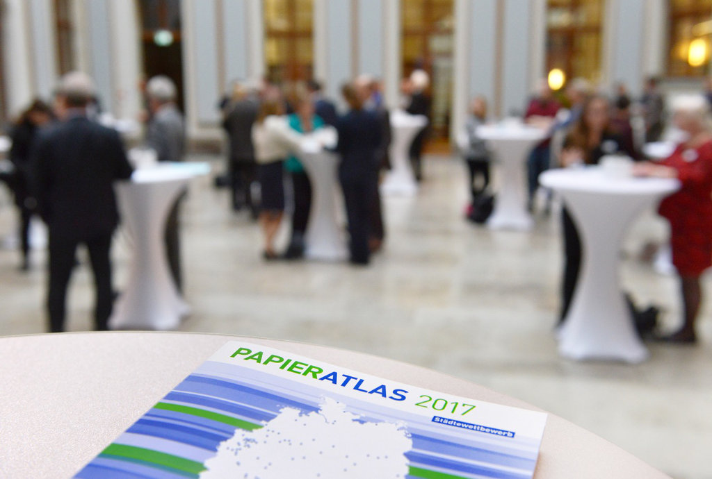 Der Papieratlas wird seit zehn Jahren von der Initiative Pro Recyclingpapier (IPR) in Kooperation mit dem Bundesumweltministerium, dem Umweltbundesamt, dem Deutschen Städtetag sowie dem Deutschen Städte- und Gemeindebund durchgeführt. Im Jubiläumsjahr beteiligten sich erstmals über 100 Groß- und Mittelstädte am Wettbewerb. Auch die durchschnittliche Recyclingpapierquote der Städte bricht mit 86,13 Prozent alle Rekorde.