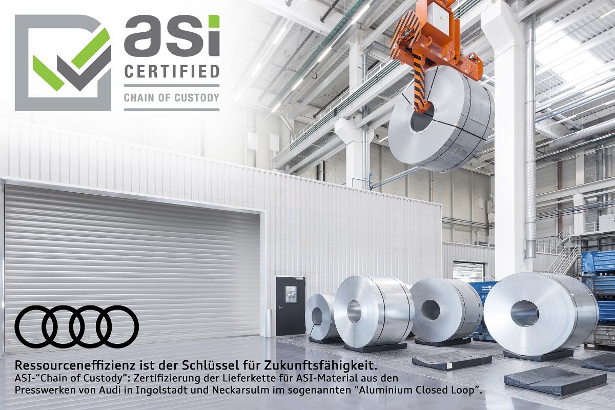 Schon 2018 bekam das Unternehmen als erster Automobilhersteller das „ASI Performance Standard“-Zertifikat, das Audi einen verantwortungsvollen Umgang mit Aluminium nach ASI-Standards im Zusammenhang mit dem Batteriegehäuse der Audi eTron-Baureihe bescheinigt. Für die Standorte Ingolstadt und Neckarsulm gab es jetzt zudem das „Chain-of-Custody“-Zertifikat. Erneut ist Audi der erste Automobilhersteller weltweit, der das Zertifikat in diesem Umfang erhält (zur Pressemeldung von Audi gelangen Sie hier). Es bestätigt, dass das ASI zertifizierte Aluminium nicht nur nachhaltig gewonnen und genutzt, sondern nachweislich auch wieder zurück in den Materialkreislauf überführt wird. Das heißt, dass auch die Verschnitte, die in den Audi-Presswerken entstehen, ASI-zertifiziert bleiben.
